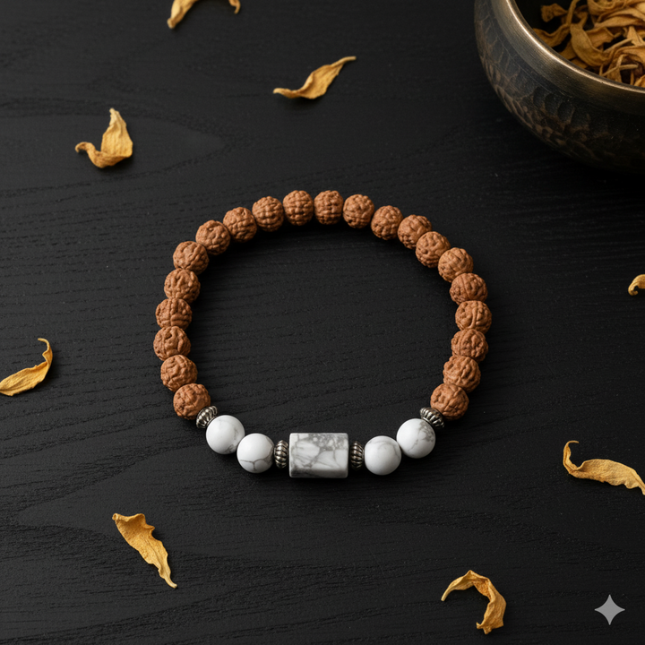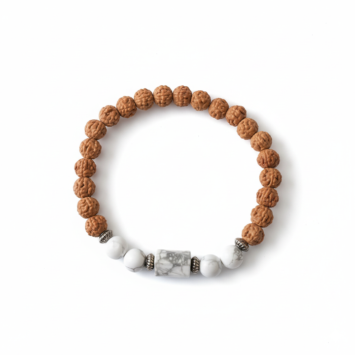 Guided by the Moon, this bracelet strengthens intuition and emotional well-being and 5 mukhi rudraksha provides peace of mind and spiritual growth