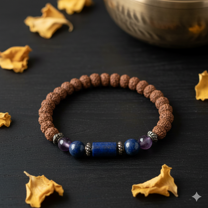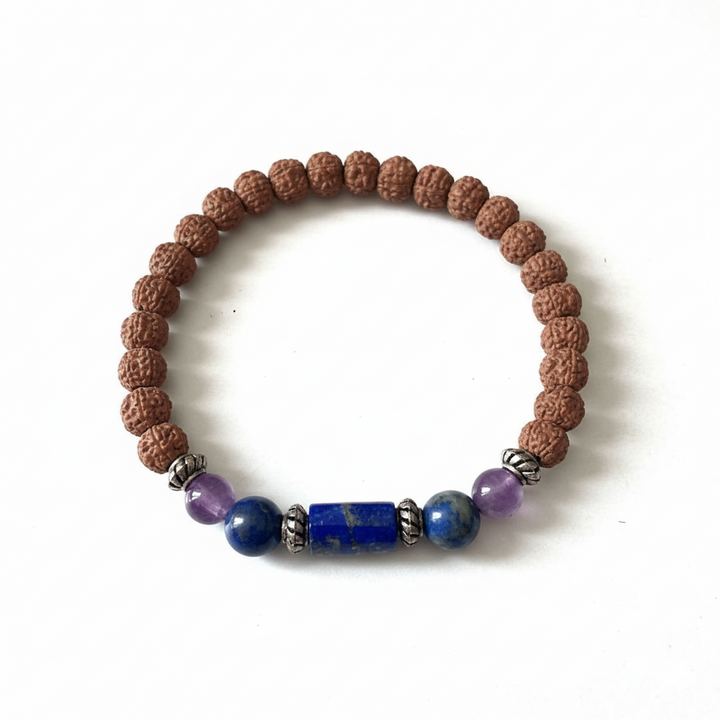 Saturn's influence makes this bracelet ideal for enhancing focus, patience, and resilience and 5 Mukhi rudraksha gives peace of mind and spiritual growth.