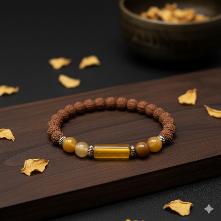 Ruled by Jupiter, this bracelet amplifies compassion, creativity, and inner wisdom or 5 mukhi rudraksha provides peace of mind and spiritual growth