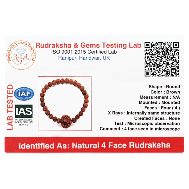 The 4 Mukhi Rudraksha is believed by the Shashtra to be Lord Brahma incarnate and its controlling planet is Mercury. It helps the wearer to gain intellectual power and knowledge.
