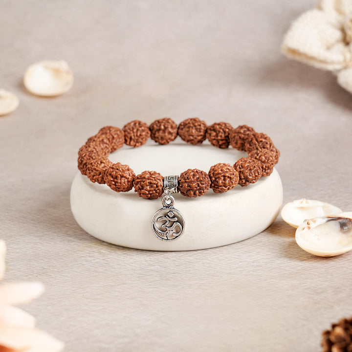 A timeless symbol of peace, protection, and spiritual strength, this bracelet combines sacred Rudraksha beads with a beautifully crafted Om charm — the sound of the universe.