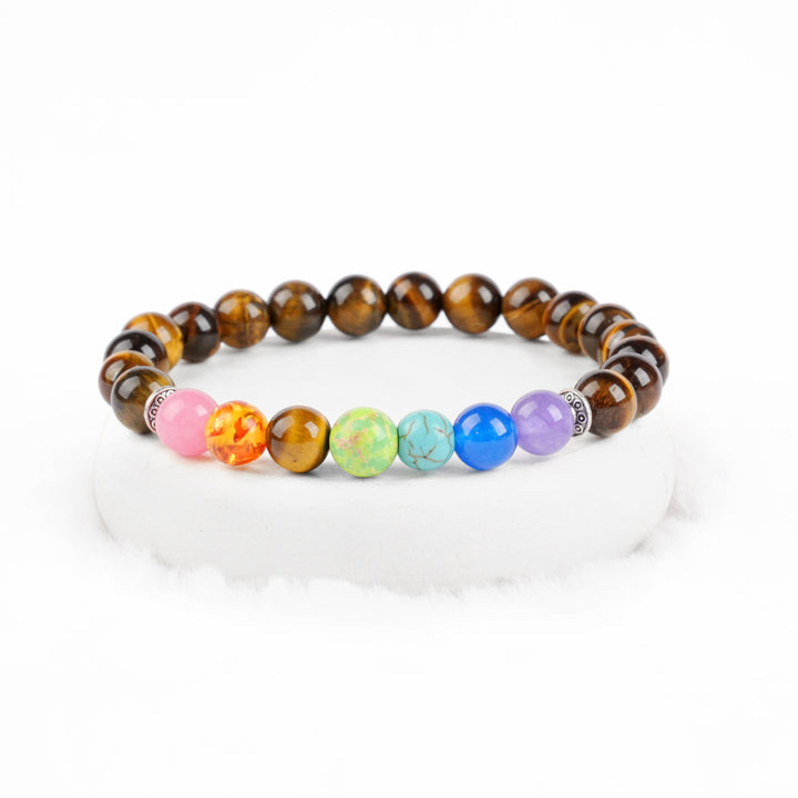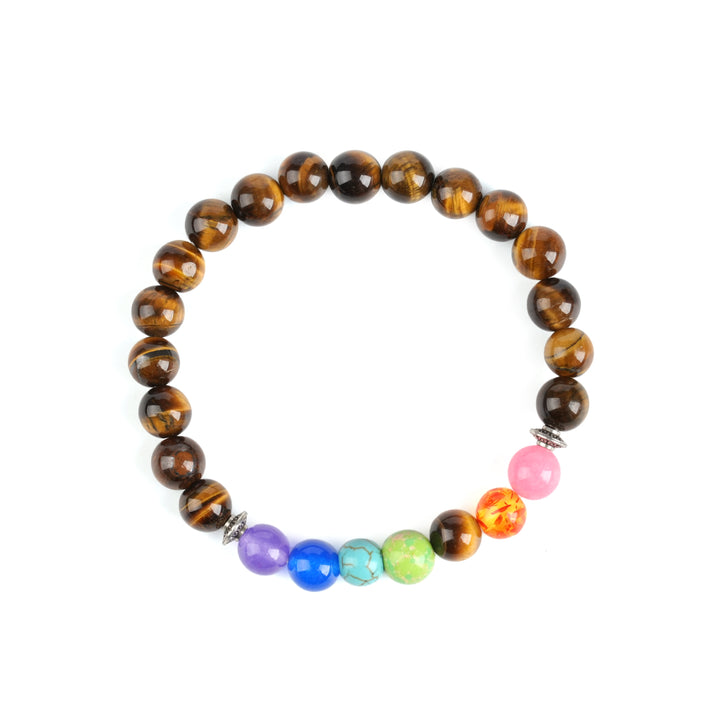 Balance your energies while staying grounded and confident with this powerful combination of 7 chakra stones and Tiger Eye — the stone of courage and protection.