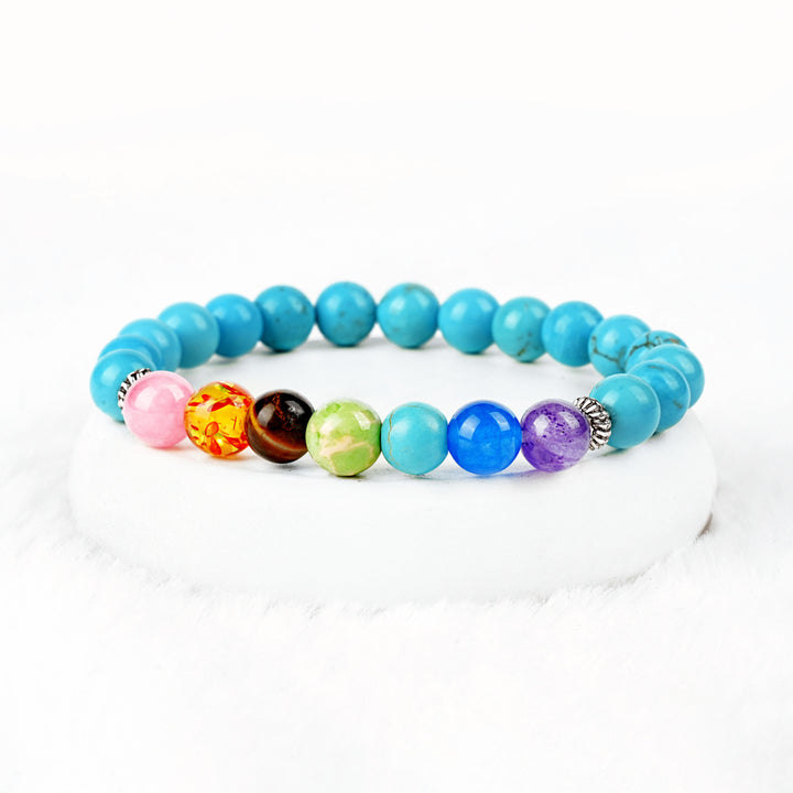 Elevate your energy and invite calm with this beautiful 7 Chakra Bracelet, thoughtfully paired with the protective and soothing energy of Turquoise. Designed for spiritual seekers, this bracelet promotes balance, positivity, and emotional well-being.