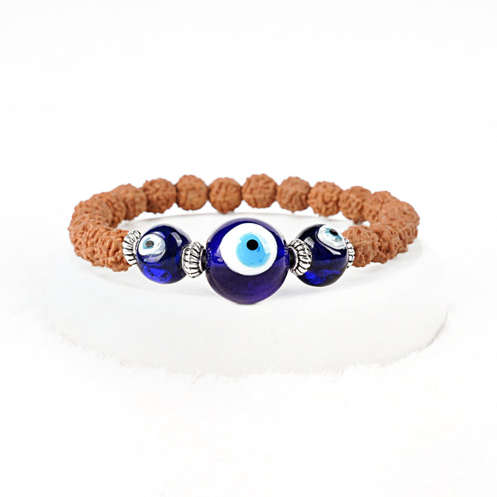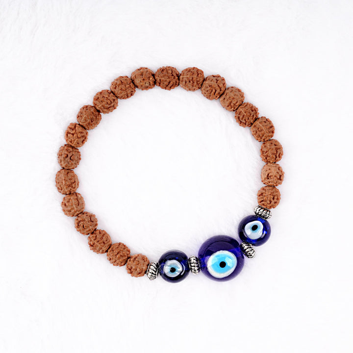 - The Evil Eye Bracelet made with a combination of 5 Mukhi Rudraksha and an Evil Eye stone is believed to have protective and warding off negative energy.