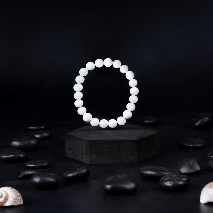 Radiating soft, soothing energy, this Mother of Pearl bracelet is a symbol of peace, purity, and emotional healing. Its natural iridescence makes it a timeless piece that nurtures both your style and spirit.