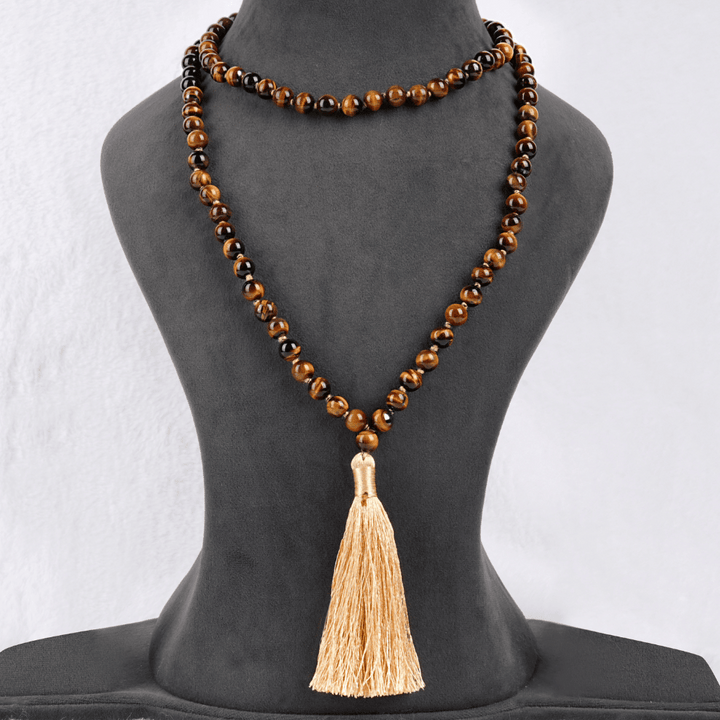 The Tiger Eye Mala is more than a spiritual accessory—it's a source of strength, courage, and inner clarity. Perfect for those on a journey of growth, success, and self-discovery.