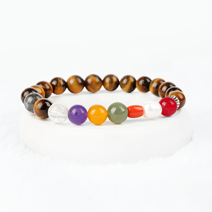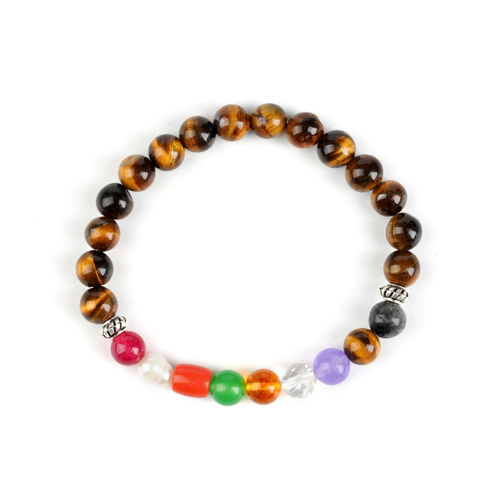 Unite the power of the nine planetary gemstones (Navratan) with the grounding energy of Tiger Eye in one powerful bracelet. Designed to harmonize your body, mind, and destiny, this piece radiates both beauty and spiritual strength.