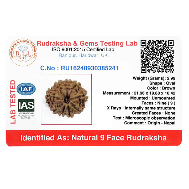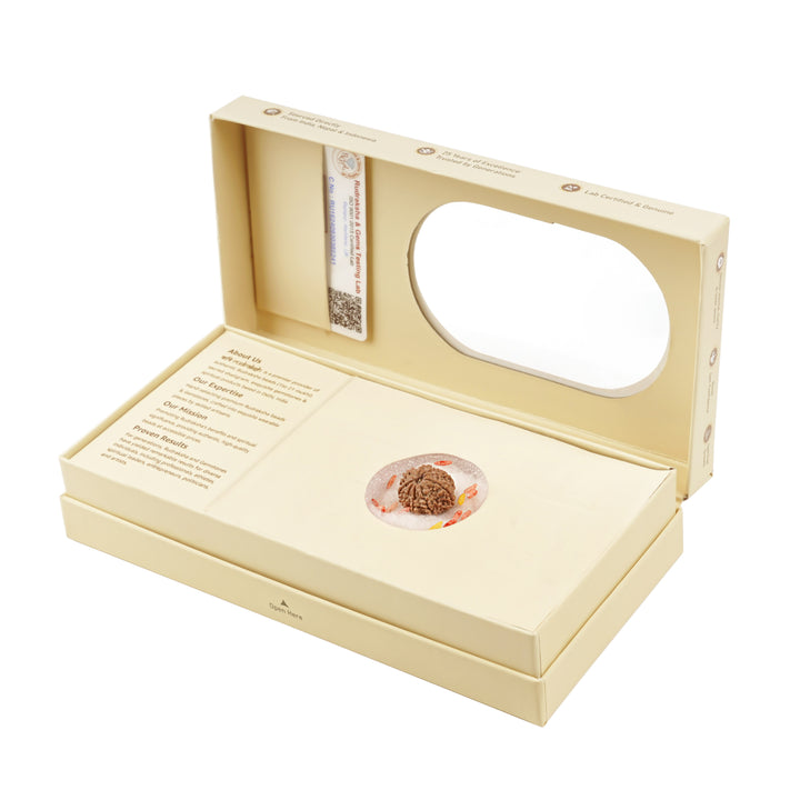 The Nine Mukhi Rudraksha embodies the fierce and protective energy of Goddess Durga (Nav Durga). Ruled by Ketu, it blesses the wearer with immense power, energy, fearlessness, and spiritual awakening.