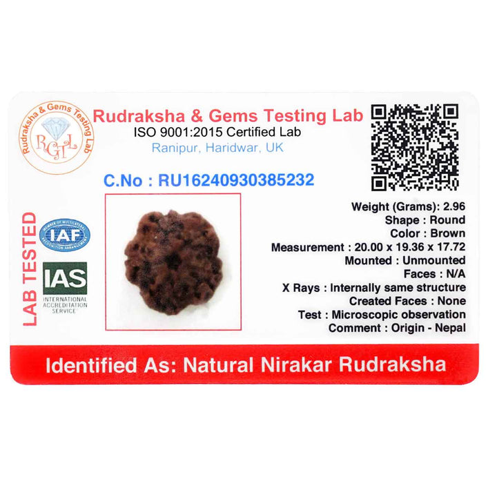 The Nirakar Rudraksha is a sacred and powerful bead, believed to be the first and original form of Rudraksha, symbolizing Lord Shiva in His formless (Nirakar) state. This unique Rudraksha is considered to hold the combined benefits of all Mukhi Rudrakshas (1-14 Mukhi), making it one of the most spiritually potent Rudrakshas.