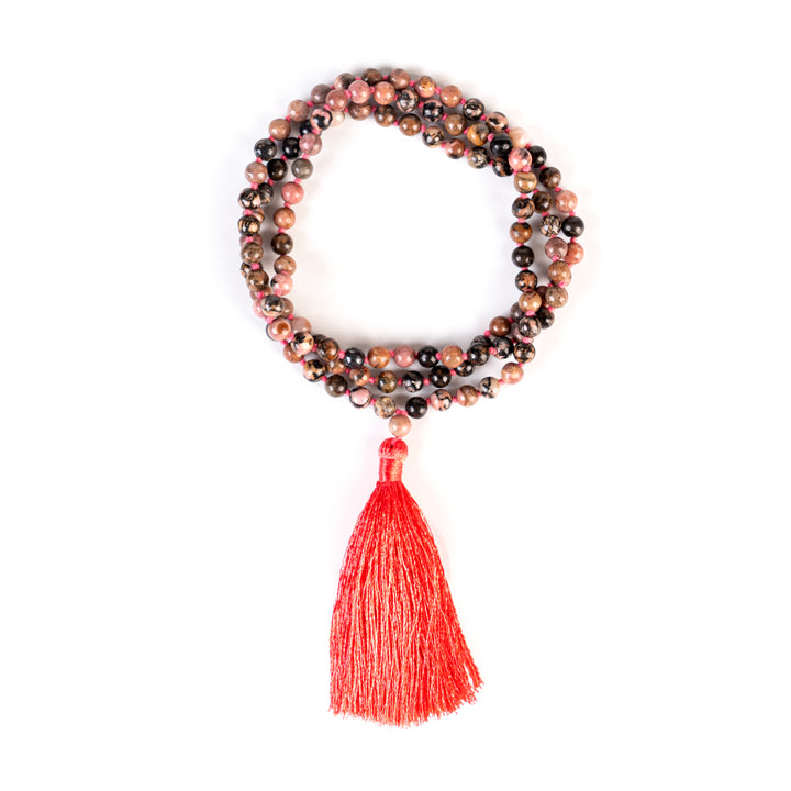 ๐ธ Rhodonite Mala โ The Stone of Love, Forgiveness & Emotional Healing