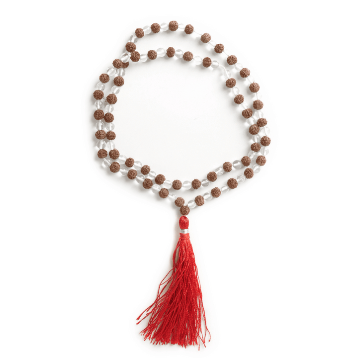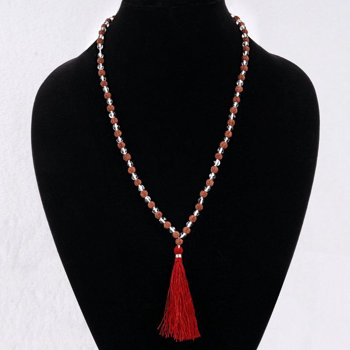 The Rudraksha Sphatik Mala is a sacred combination of Rudraksha beads (symbolizing Lord Shiva) and Sphatik beads (representing Goddess Lakshmi). This mala is revered for its ability to balance masculine and feminine energies, promoting both spiritual strength and material prosperity.
