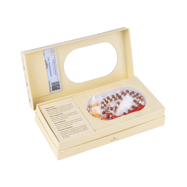 While Rudraksha enhances protection, courage, and inner transformation, Sphatik (Clear Quartz) is known for its cooling nature, clarity of thought, and abundance-attracting energy. Together, they create a perfect harmony of peace, power, and positivity.