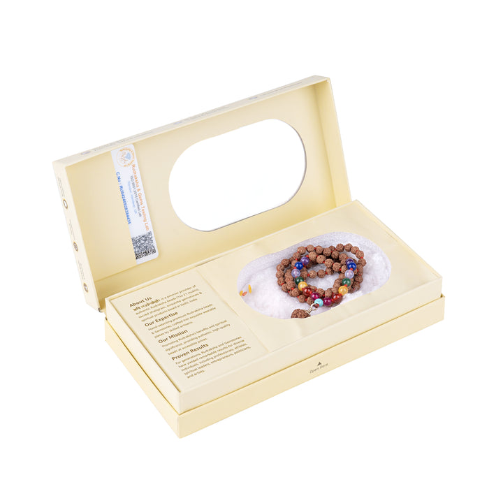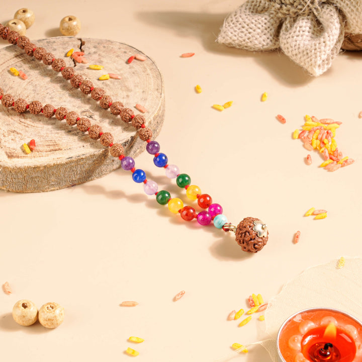 ✔ Rudraksha + Seven Chakra Stones: Energy alignment, healing & vitality