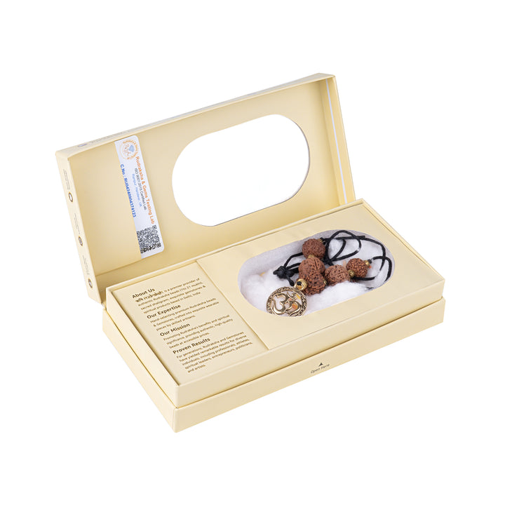 This shield made of extremely powerful Rudrakshas is a blessing of Lord Shiva for humans. One Rudraksha of high quality ranging from 4 Mukhi to 8 Mukhi has been preserved in this shield.