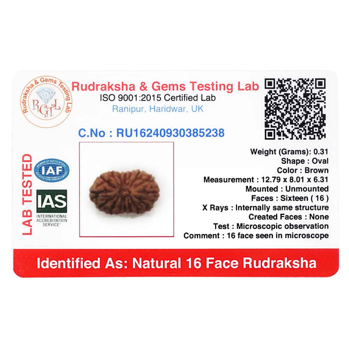 Known as the Maha Mrityunjaya Rudraksha, the Sixteen Mukhi Rudraksha symbolizes the blessings of Lord Shiva in his fiercest form—conquering death, fear, and negativity.