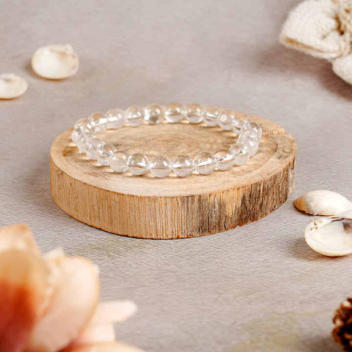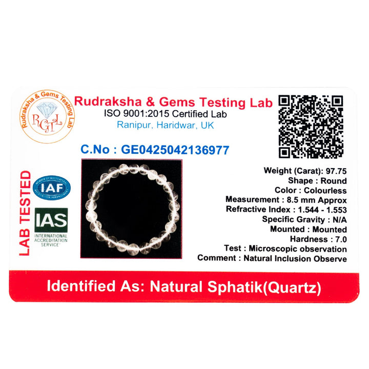 Made from natural clear quartz crystals, the Sphatik Bracelet is known for its powerful ability to amplify energy, calm the mind, and bring mental clarity.