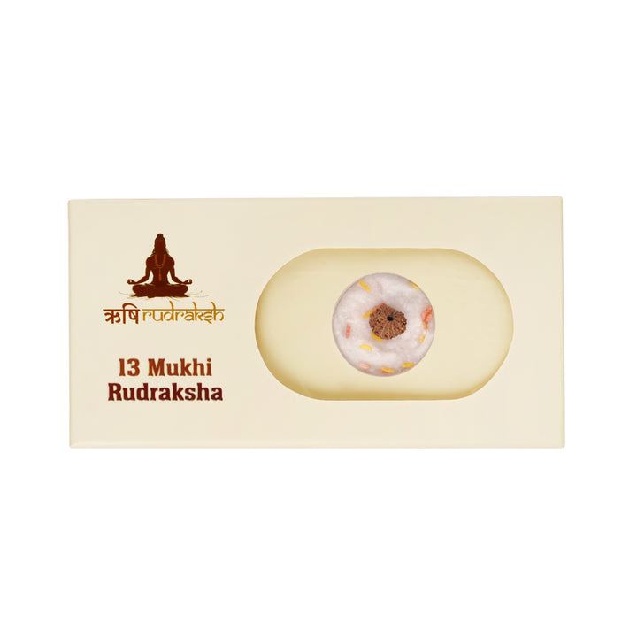 The Thirteen Mukhi Rudraksha represents Lord Indra and Kamadeva, the gods of luxury and attraction. Ruled by Venus, this Rudraksha is known to amplify magnetism, confidence, and personal appeal while fulfilling material and emotional desires.