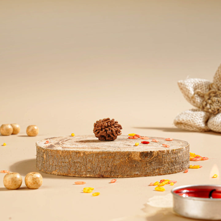 The Two Mukhi Rudraksha represents duality becoming one—masculine and feminine, mind and soul, self and universe. Ruled by the Moon (Chandra), it stabilizes emotions, heals the heart, and promotes unity in partnerships and within oneself.
